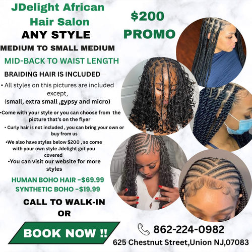 (1a,,) JDELIGHT SPECIAL > ANY STYLE FROM THIS FLYER, MID-BACK TO WAIST- LENGTH WITH BRAIDING HAIR INCLUDED. SYTHENTIC CURLS INCLUDED, HUMAN HAIR CURL $59:99.