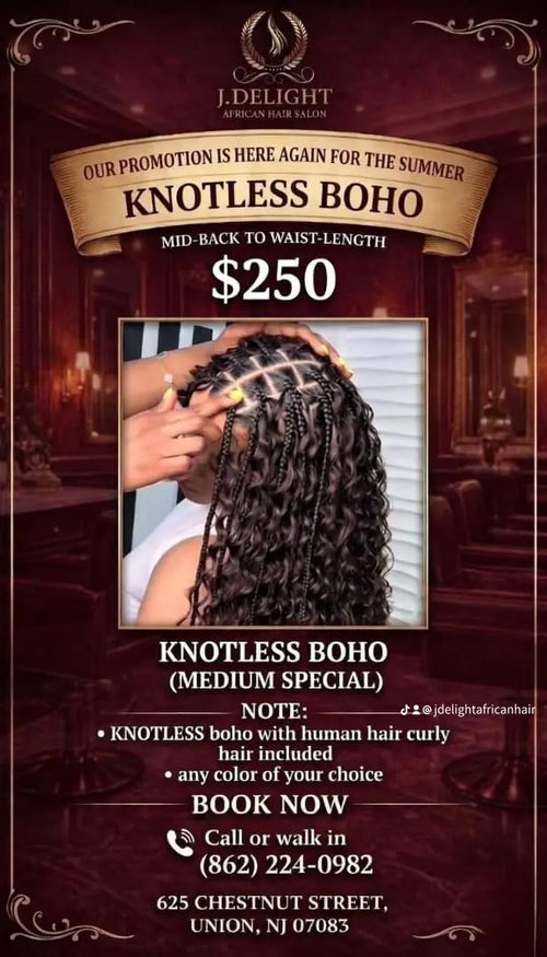 (1b.) SPECIAL PROMO BOHEMIAN KNOTLESS BRAIDS WITH BRAIDING HAIR INCLUDED. PLS READ FLYER.